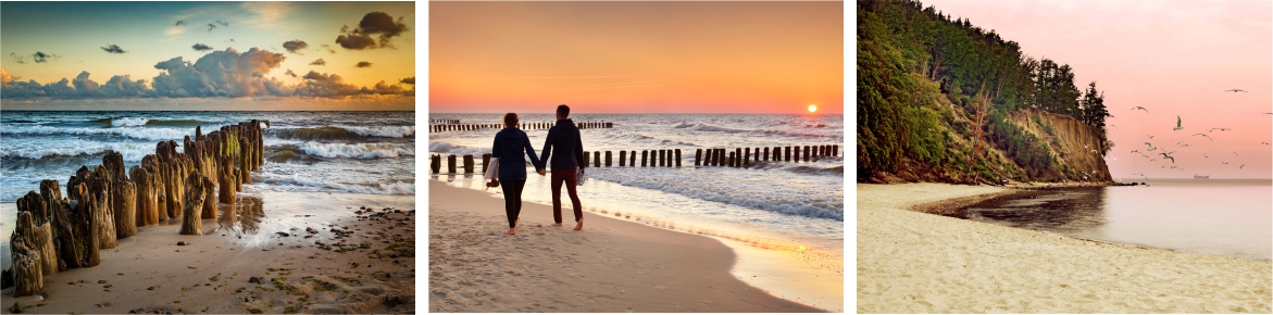 Efteråret er også fantastisk til en tur til den polske kyst. Østersøkysten er enestående smuk på denne årstid. Billedskønne bølgetoppe bryder frem fra havets overflade, solen skinner i varmere toner og sandets temperatur minder en, om at sommeren kun lige er forbi. Oktober er en tid med hyppigere stormvejr – farligt til havs, men også smukt og fascinerende. Det er på denne tid, at stormene får Østersøen til at skylle mest rav op på stranden og til at afgive den største mængde helsebringende jod.