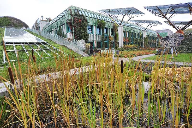 De gevel van dit gebouw verbeeldt een rij opengeslagen boeken, en behoort tot de interessantste voorbeelden van hedendaagse architectuur in Warschau. De daktuin is open voor het publiek.