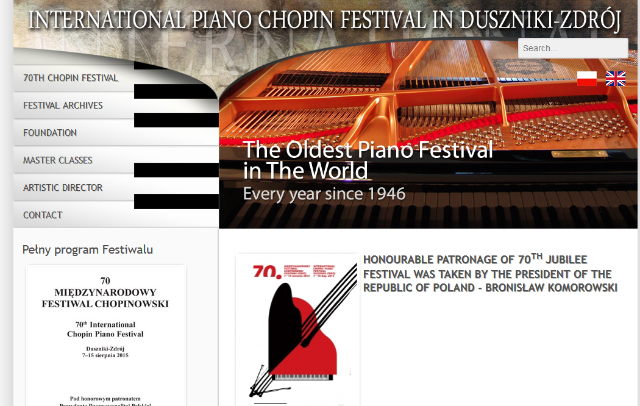 Het festival in Duszniki Zdroj, is het oudste festival in Polen en het grootste Chopin evenement in de wereld. Traditioneel gaat dit festival door aan het begin van augustus. Tijdens dit 9-daagse festival worden om en bij de 25 concerten en recitals gehouden, uitgevoerd door ’s werelds beste pianisten. Met de prachtige omgeving van de Tafelbergen op de achtergrond, vormt het Chopin festival in Duszniki Zdroj een van de meest uitzonderlijke festivals in Polen.