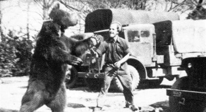 De beer was echter niet alleen de mascotte van de compagnie. Weldra bleek ook dat hij een volwaardige strijdmakker was. Hij sjouwde onder andere munitie tijdens de gevechten bij Monte Cassino. Ondanks de chaos en de exploderende granaten bracht hij dapper munitie naar de artillerieposities. Dat was zo een ongebruikelijk tafereel dat één van de Poolse soldaten dit op papier wilde vereeuwigen. Zijn schets werd spoedig het logo van de 22e Artillerie Bevoorradingscompagnie. De soldaten droegen het als schouderpatch op hun uniform en het logo werd op alle vrachtwagens van de compagnie geschilderd.