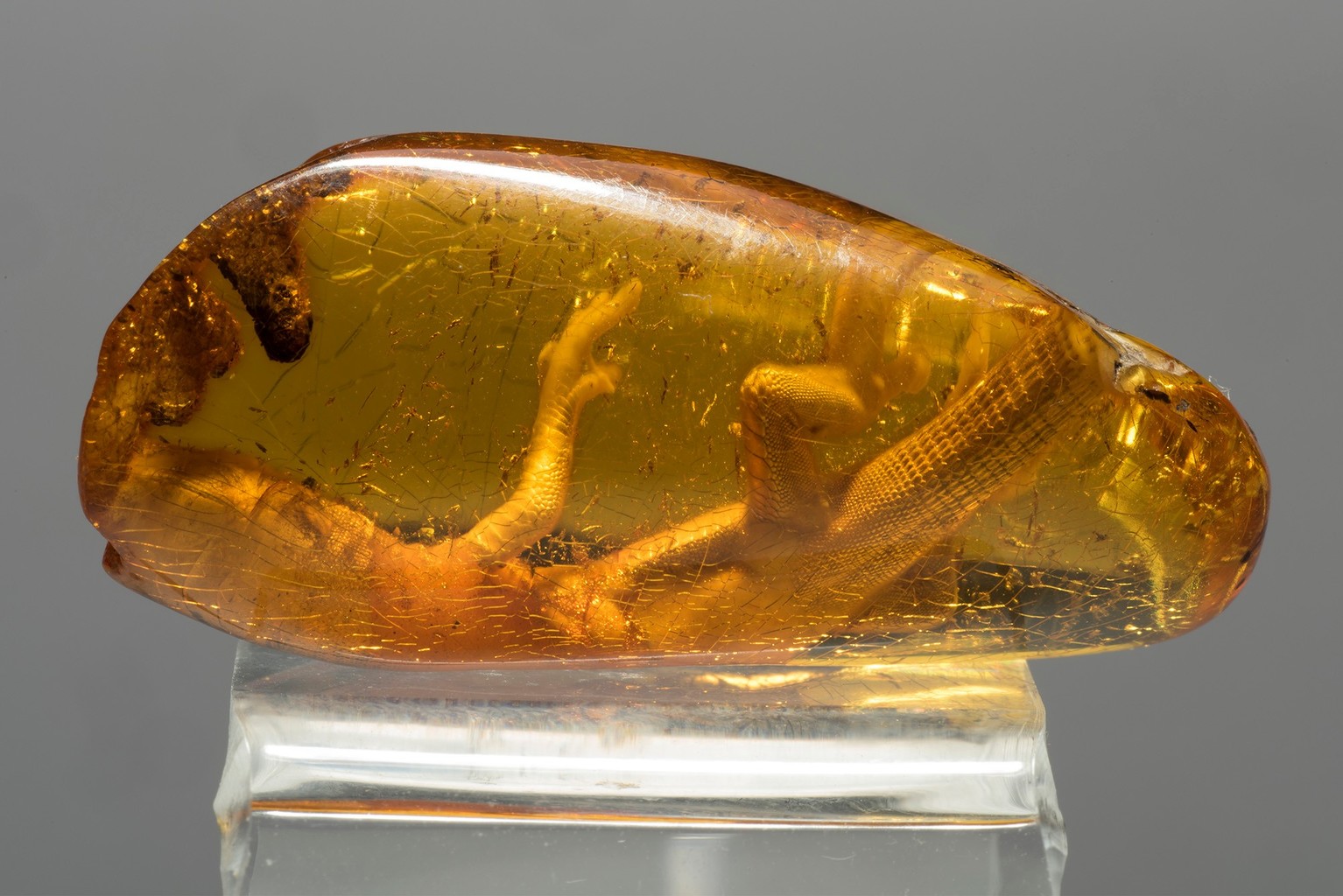 Det indre af den historiske store mølle er indhyllet i halvmørke, en effekt, der er skabt til den nye udstilling, hvor væggene og gulvene er sorte for at understrege auraen af mystik. Belysningen og den lyse ravfarve mod den kontrasterende sorte baggrund fremhæve mineralets skønhed og føre de besøgende ind i udstillingernes univers.
