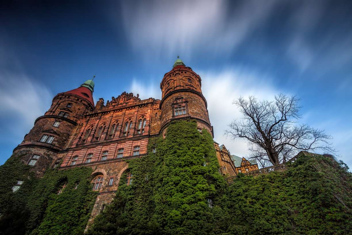 Beläget i Nedre Schlesien, precis vid gränsen till Tjeckien och Tyskland. Om du älskar atmosfären i Harry Potter kommer den här platsen att trollbinda dig. I slottet finns många lönngångar, rörliga väggar och spökhistorier om otrogna fruar.