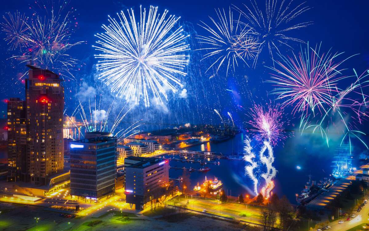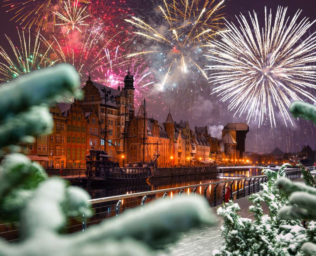 Gdańsk bjuder in till en utomhusdanskväll nära Targ Węglowy, där DJ-set skapar en festlig stämning för alla som vill fira tillsammans. Spektakulär ljussättning och pyrotekniska effekter ramar in kvällen, med den traditionella höjdpunkten vid midnatt.