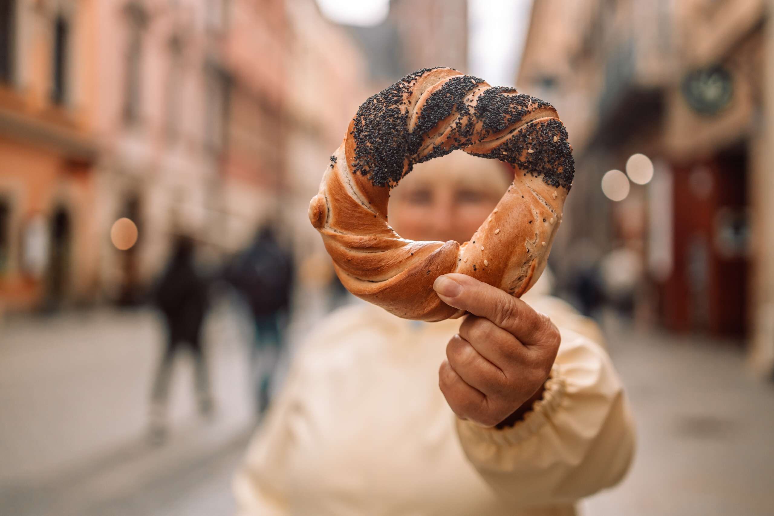 I Kraków säljs överallt den klassiska Obwarzanek krakowski – ett ringformat bröd bestrött med vallmo, sesam eller salt. Den har bakats i staden sedan medeltiden och är lika självklar för Kraków som bageln är för New York.