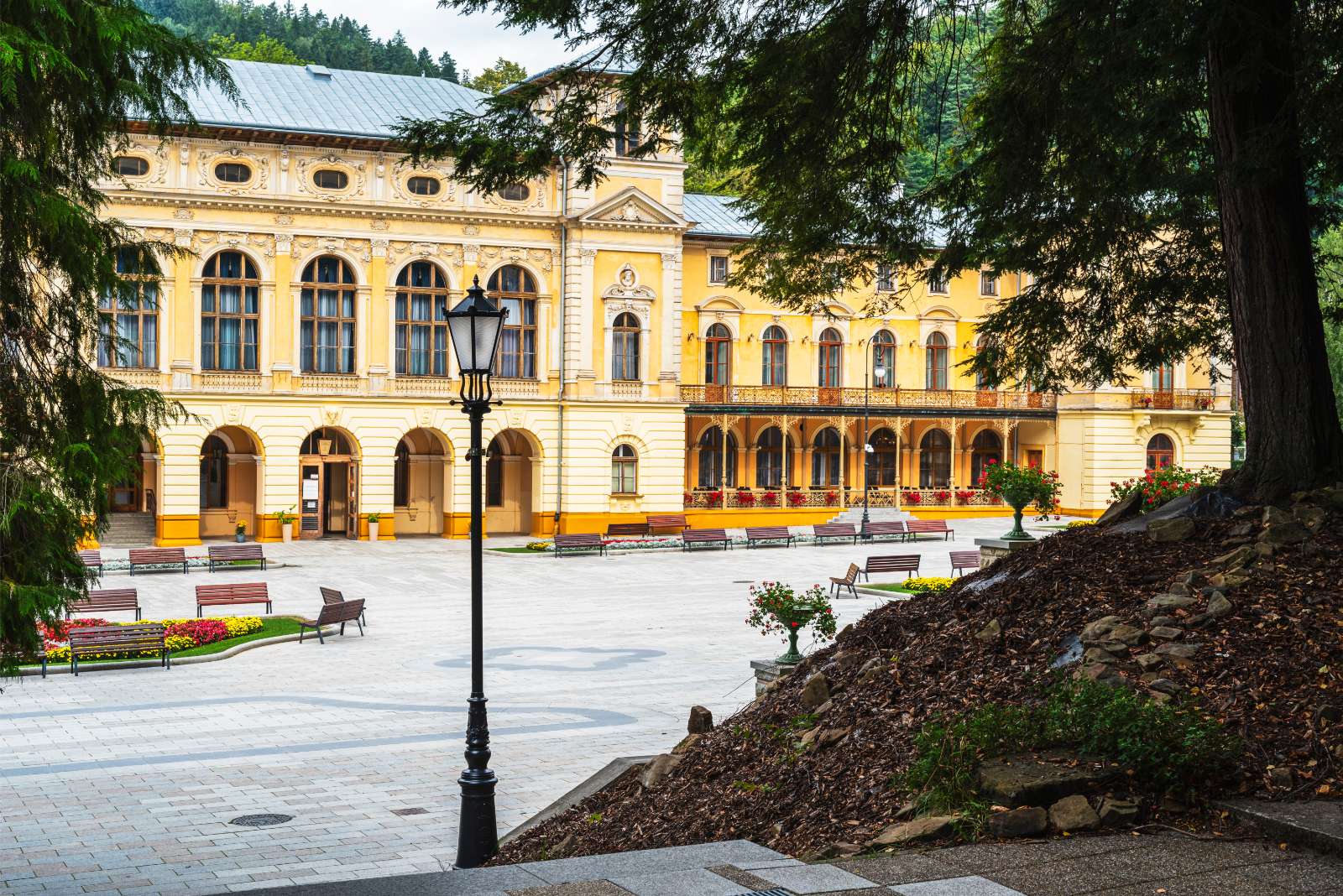 Sanatoriet i Krynica-Zdrój – Żegiestów-Zdrój “Uzdrowisko Krynica-Żegiestów” ligger i den klassiska kurorten Krynica-Zdrój i sydöstra Polen, omgiven av de mjuka, skogsklädda kullarna i Beskid Sądecki-bergen. Närheten till grönskande parker och promenadstråk skapar en lugn och naturnära miljö som inbjuder till vila och återhämtning. Orten har varit känd som hälsodestination i över tvåhundra år och lockar besökare med sin harmoniska atmosfär och sitt friska bergsluft.